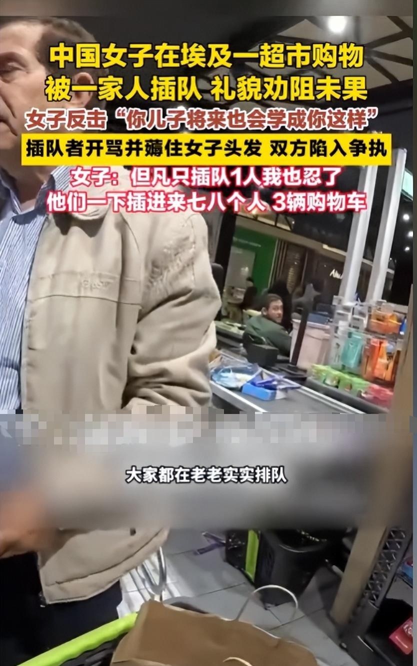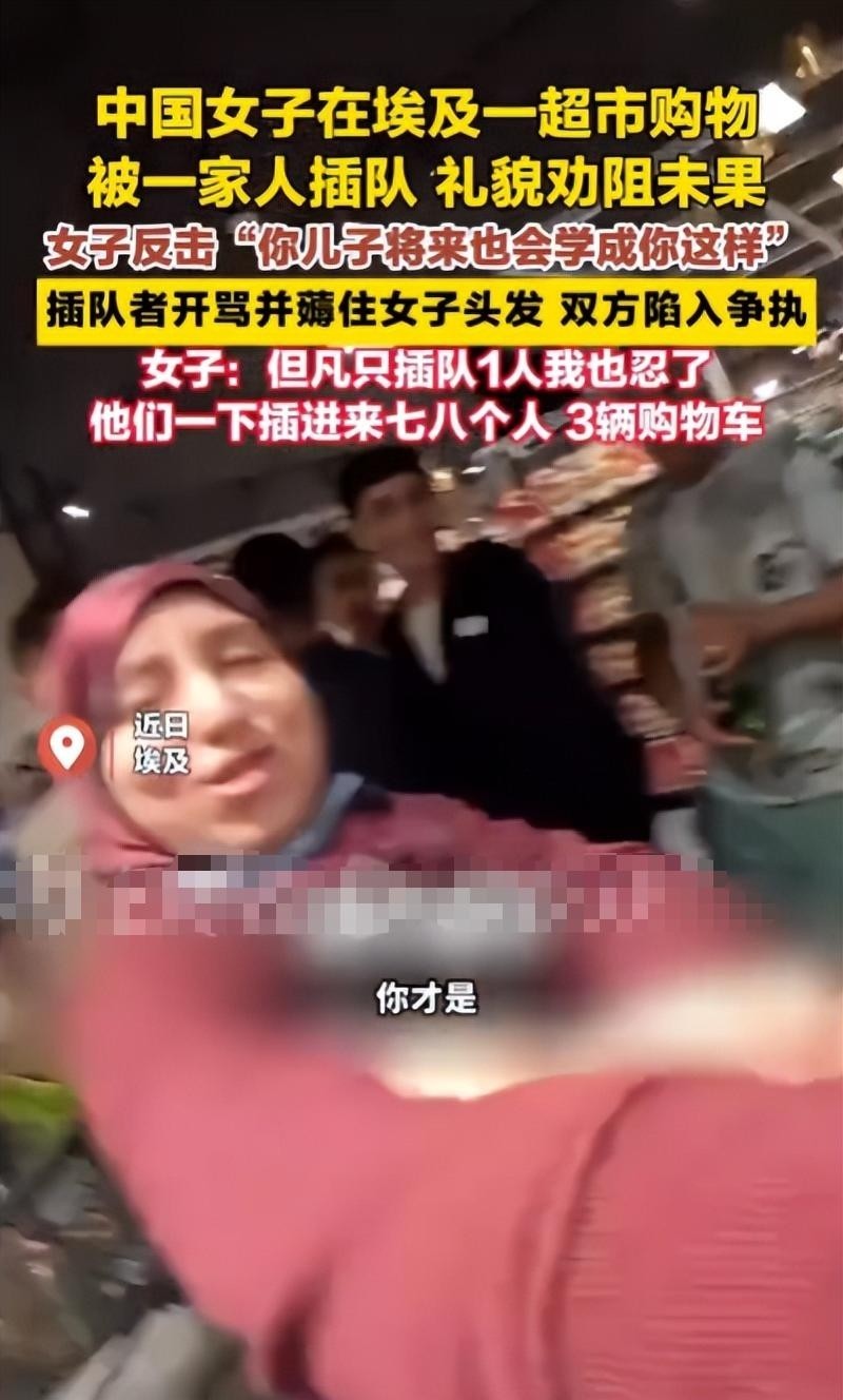 豫视频——“中国女子在埃及一超市购物时被一家人插队,礼貌劝阻未果 插队者开骂并薅住女子头发,双方陷入争执 #埃及 #插队”